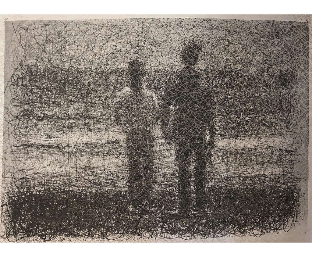 Multi-textured works form a large number of the collection this month. We are encouraged to delve beneath the layers of Ruth Richmond’s silkscreen print All in Order. Irregular angles and curves provide a stunning exploration of geometry and light formation in 17.39 by Andreas Soldini. Peter Evans abstract Two Hundred and Fifty Grand (Scratchcard Painting #18) also offers a refreshing celebration of an everyday object.