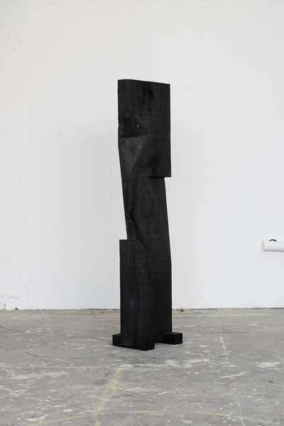 Sculpture can also make a bold statement in a neutral room. The striking wooden form of Nathan Henton’s monolithic Untitled (The Black Water) alludes to the void within the architectural landscape. Figurative and geometric shapes combine to create a tender depiction of humanity in John Clark’s The helping Hand.