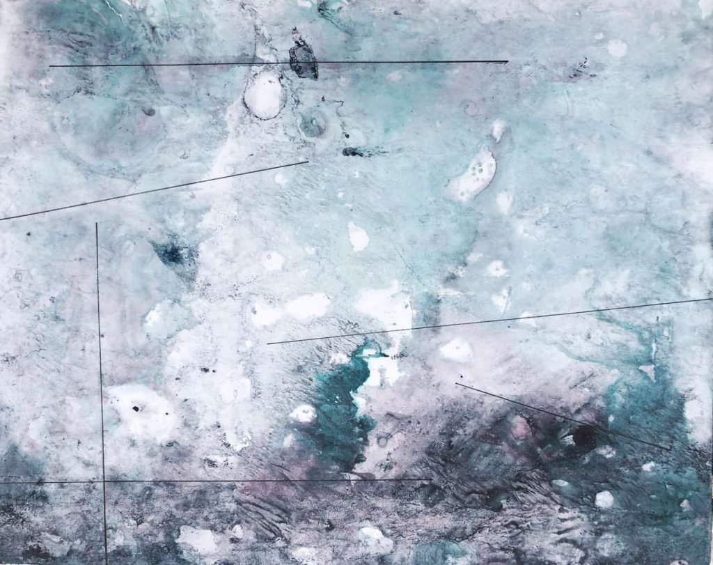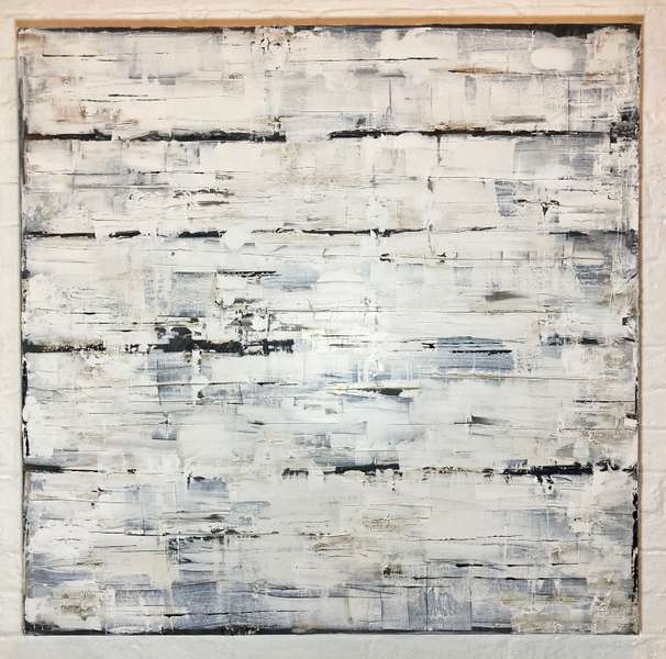 Finally, the elusive and transient nature of light is explored in a number of abstract works. Bold circles form an escapist vision in Glib Franko’s 48°23’11.8″N 24°27’34.9″E. Boogie Woogie by Janine Hall houses an expressive meeting point for light and shadow to dance across the canvas. Malgorzata Lapsa-Malawska achieves a sense of clarity and transient space within her Lifeline Reading Guide, while Configure III by Timothy Betton combines linear repetitions with multiple facades of paint to distort the space and play with boundaries.