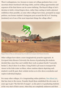 With the cancellation of final-year exhibitions, students lost a vital showcase