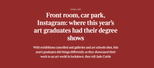 During lockdown I have been involved in digital artist residencies and livestreamed art events, designed a virtual art exhibition, sold work through the Artist Support Pledge and grown a broader network of support. I am especially grateful to New Blood Art, an online art company that introduces graduating artists to the art-buying public. Everyone has had to adapt extremely quickly, and this has opened new possibilities of working, collaborating and networking — that can only have a positive impact.