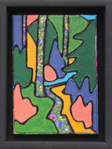 Nicola Wiltshire draws on everyday observation – woodland walks, flowers from the garden and the landscapes glimpsed from a train window – translating these moments through vivid colour and the tactile surface of patterned fabric.