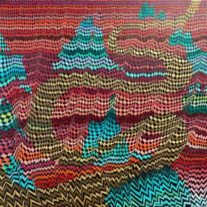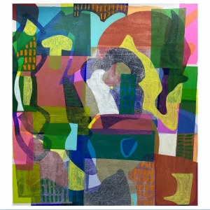 There’s something very rejuvenating about these mainly abstract works: a kind of cellular reset through living colours and organic shapes. Many have a diffuse energy, and they would make a strong focal point in a room. Such works – in any colour or neutral palette – can bring balance to a space. Multiplicity, arrival and pattern are the key words of this curation.