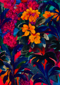 Floral painting often carries a layer of sentimentality. In this curation, Orlanda Broom’s lush, exotic landscapes, Emily McGuire’s reflections on transient beauty, and Xiaoyu Shi’s explorations of life and decay use the motif as a way to think about cycles. These works hold beauty and breakdown together, tracing movement through bloom, fade and renewal.
