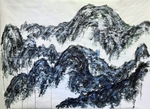 The rhythmic structure of the mountain in Tian Rossana Wong’s painting ‘Rite of Spring Part 1’ is at once taut and slack, like the spine of a semi-dormant animal. As this title referencing Stravinsky suggests, her most recent work has explored the relation between visual art and music. Depth will be understood as a feature of surface, an observation that derives from the artist’s calligraphy skills.